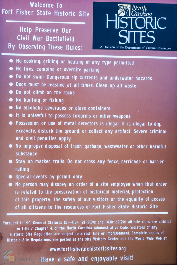 There are no admission fees, (although donations are appreciated), and the Fort Fisher State Historic Site is open Monday through Saturday, 9:00 a.m. through 5:00 p.m., and Sunday from 1:00 p.m. until 5:00 p.m. with slightly limited hours from Labor Day until Memorial Day during the winter months. The fort also hosts special events, including educational programs, lectures by visiting experts, and Civil War reenactments, and a detailed list of upcoming events can be found online.